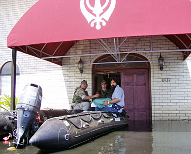 New Orleans, LA (KP) - New Orleans Gurdwara Sahib on Morris Road has been functioning for the past fifteen years, but today it is under nine feet of water. When hurricane Katrina hit, the Gurdwara Sahib faced the brunt of the floodwaters. Due to the flooding, Sikhs across the USA became concerned about Guru Sahib’s Saroop, which was inside of the Gurdwara during the floods. The New Orleans sangat was unable to remove Guru Sahibs Saroop from the Gurdwara Sahib before the mandatory evacuation orders were issued by authorities.