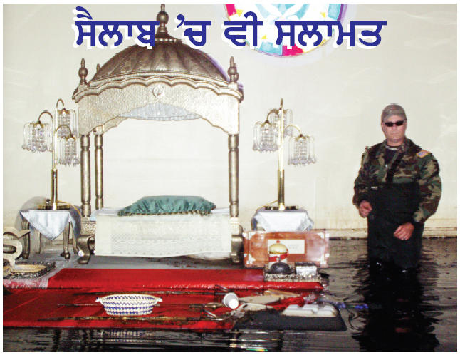 As the operation began, the team knew that there could be danger ahead due to the curfews and random shootings taking place in the city. Upon entering, the team saw that the Gurdwara Sahib was completely damaged due to the ferocity of hurricane Katrina. However, the most amazing sight, which the team viewed, was that of Guru Sahib. Guru Sahib’s Saroop along with the Palki was amazingly floating on the five-foot high floodwaters. “I was amazed, looking at the Guru Sahib’s sukhasan on the Palki, floating on five feet of water and untouched by the flood waters,” said Hardayal Singh. Guru Granth Sahib Ji along with gutkas, pothis, khanda, kirpans and other religiously significant items were respectfully carried out the Gurdwara building. “I am overwhelmed and glad that Guru Granth Sahib has been recovered from the floods. I am honored to have been part of this rescue operation,” said Ranbir Kaur.
