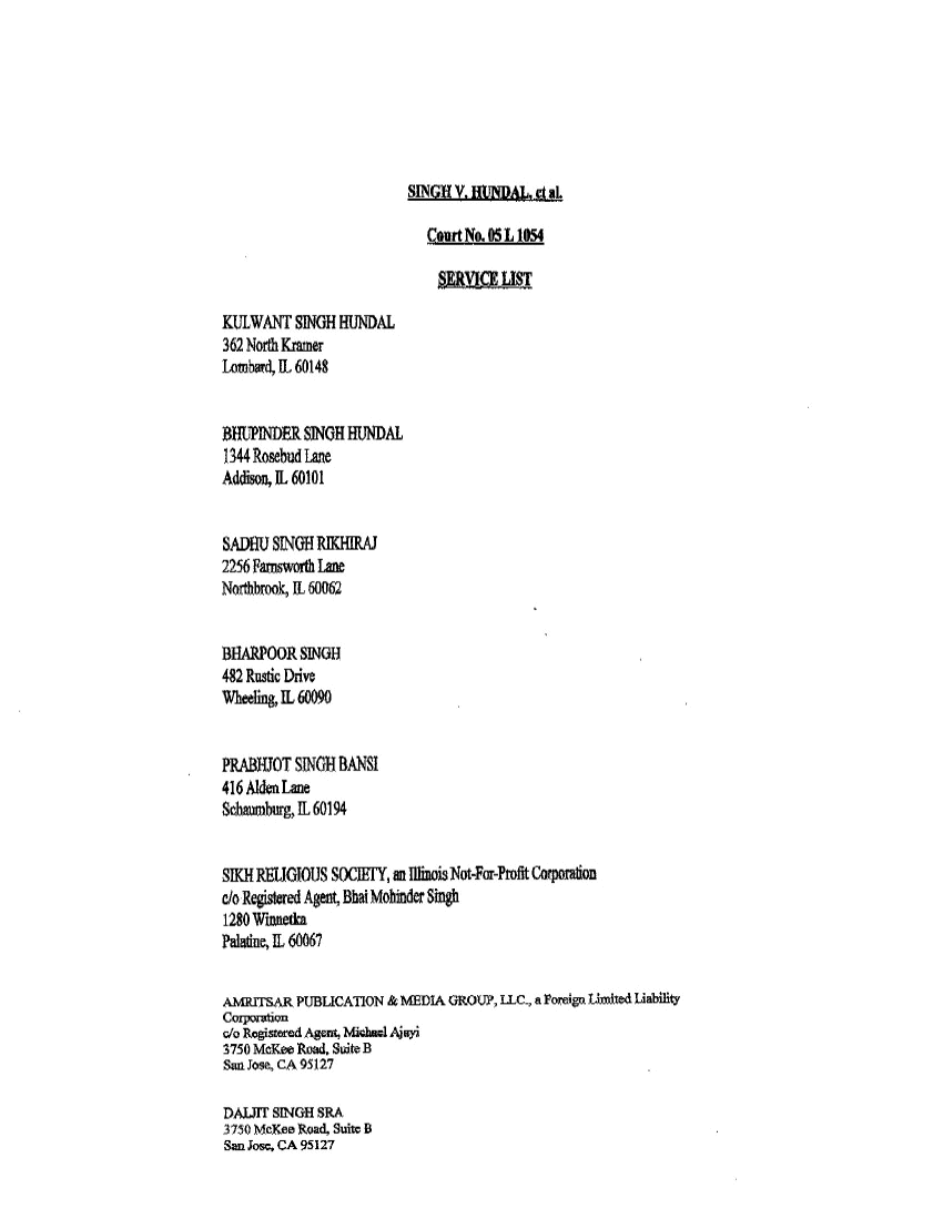 Daljeet later served a legal notice to serval people that claimed to sue for 50 million US dollars (Rs 22 crore) in damages alleging that he had been wrong fully defamed in addition to; invasion of privacy, intentional infliction of emotional distress, malicious prosecution, and conspiracy. The Baba filed the lawsuit on Tuesday December 27, 2005 in the Nineteenth Judicial Circuit Court of Lake County, Illinois against Kulwant Singh Hundal, Bhupinder Singh Hundal, Sadhu Singh Rikhiraj, Bharpoor Singh, and Prabhjot Singh Bansi. Attached is copy pf the legal notice that was by the defendents.