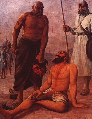 The Nawab thought this was some sort of sorcery, so he thought of a way around Bhai Sahib’s Bachan. He ordered that Bhai Sahib’s scalp be removed with his hair intact.